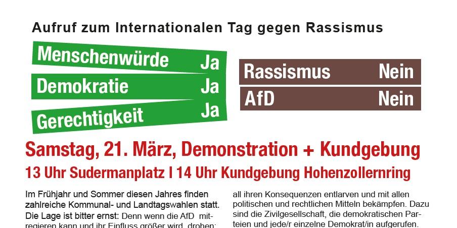 Aufruf zur Demonstration am 21. März zum Internationalen Tag gegen Rassismus